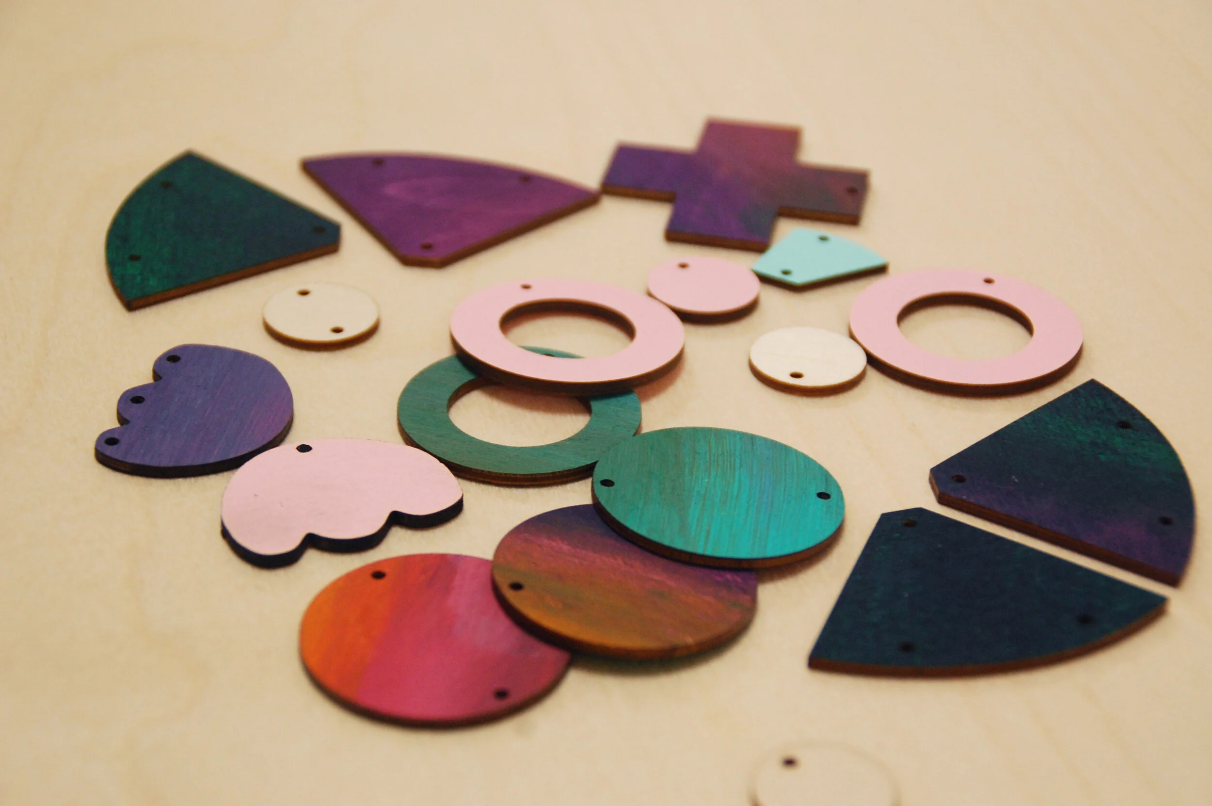 Luvassa on myös G-moodin pitämä herkullinen korupaja, jossa saadaan isommista tuotteista ylijääneet palat todellakin hyötykäyttöön! Tarjolla on eri värisiä ja kokoisia puisia paloja, joista voi suunnitella itselleen aivan ihanat ja omannäköiset korvakorut.